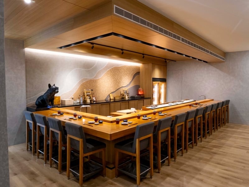用餐全採預約制,僅設15席板前座位,讓料理長可以專注於每一位賓客的體驗。無菜單料理以京都風割烹為主軸,從4500元、6000元到8000元的三種價位,會依當季食材與日本進口的稀珍海味進行配置,每一套約16至18道料理,從前菜、生魚片、熟食到握壽司與湯品,一道一道鋪陳出味蕾的層次感。這樣的用餐節奏,非常適合重要聚會、慶祝時刻,或是想好好犒賞彼此的一場冬日餐桌。