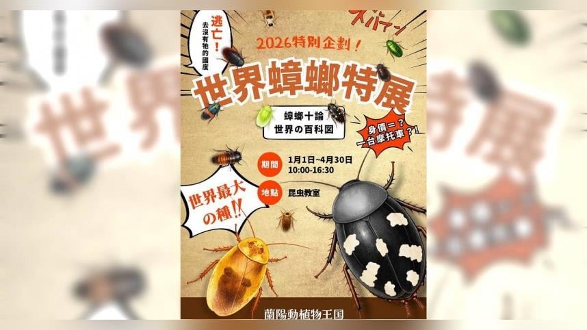 宜蘭「蘭陽動植物王國」宣布將於2026春季推出「世界蟑螂特展」,展出多種全球罕見蟑螂,其中不乏色彩鮮豔、身價高昂的品種,園方指出最稀有品種價格堪比一台機車,活動並安排與蟑螂互動的展示體驗;但消息曝光後在網路引發兩極反應,有人表示害怕、有的則期待一睹珍稀物種風采,甚至有人揶揄展覽名稱。