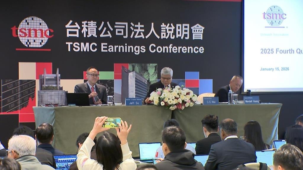全球晶圓代工龍頭、台積電,備受矚目的法說會今天(15)下午登場,董事長魏哲家親自主持,最大亮點是2025年第四季,是由史以來,第一次跨越1兆新台幣營收,是最強的一季,換算每小時進帳2.29億台幣,魏哲家還被問紐約時報報導,究竟有沒有要投資五座晶圓廠,他沒證實,只說得看生意啦。