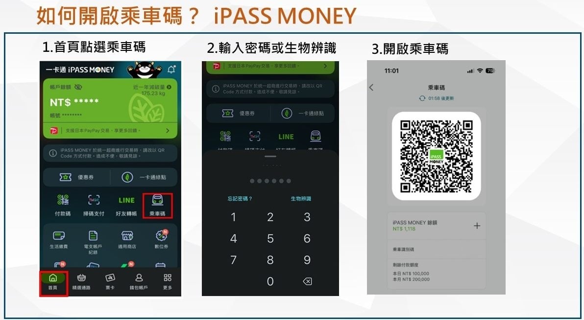 iPASS MONEY使用乘車碼。圖:交通局提供