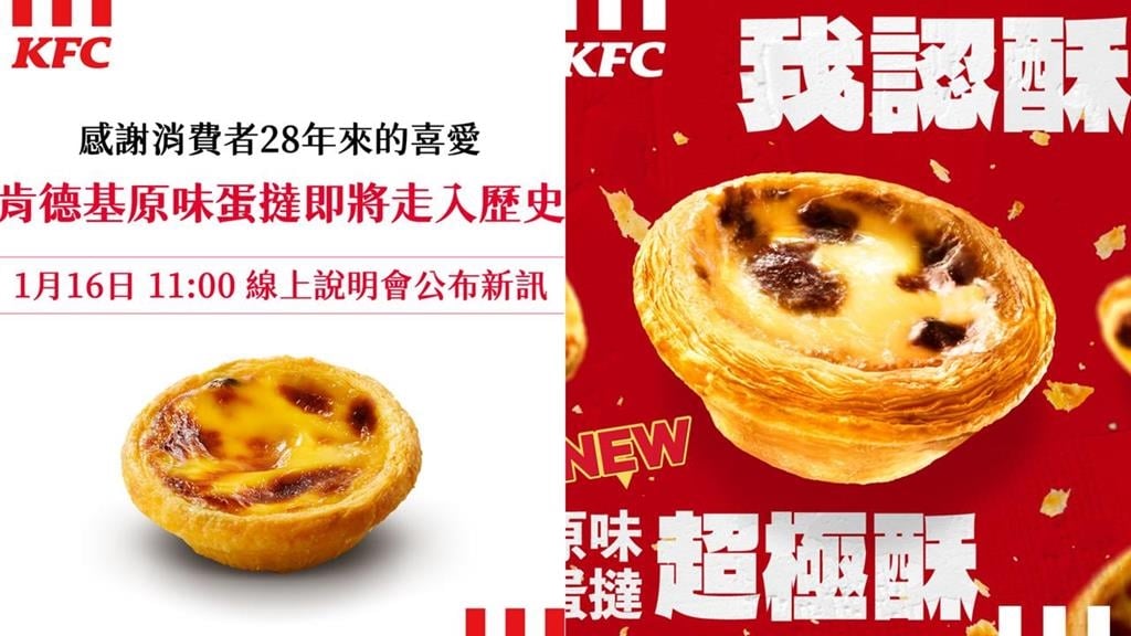肯德基蛋撻是店內熱銷美食之一,好吃程度更被形容為「被蛋撻耽誤的炸雞店」,不過肯德基日前突然放出風聲「原味蛋撻…登出了?」,再無預警宣布「原味蛋撻即將正式走入歷史」、「售完為止」的停售消息,讓喜愛這一味的民眾搶在販售完之前再次品嚐經典好味道,引發「蛋撻之亂」。昨(16日)官方再度發文,玩起諧音哏表示「徹底『認 .酥 .了』!」,改良原味蛋撻,外層酥皮進化成「超極酥」,將於1月20日全台全面上市。消息曝光,不僅沒有讓消費者更期待,反而有種被欺騙的感覺。