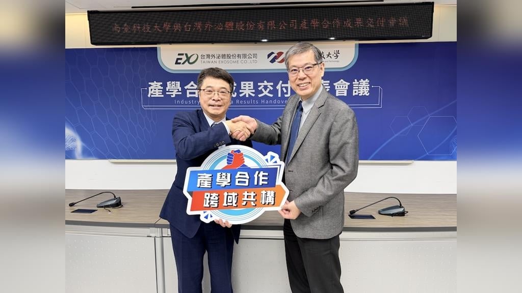 CNEWS匯流新聞網記者胡照鑫/台南報導自2024年啟動深度合作,成功鎖定「六種植物外泌體製程」與「NK外泌體治療腎病變」兩大領域完成關鍵驗證。台灣外泌體(Taiwan Exosome Company,TEC)今(16)日宣布與南臺科技大學達成重大產學研發里程碑,研發成果將正式輸出至日本熊本KAiTA人工智慧科技園區,攜手日方團隊啟動臨床前試驗與自動化量產,加速佈局全球再生醫療市場,並由台灣外泌體執行長陳振興與南臺科技大學學術副校長王振乾見證簽署產學合作交付發表成果。