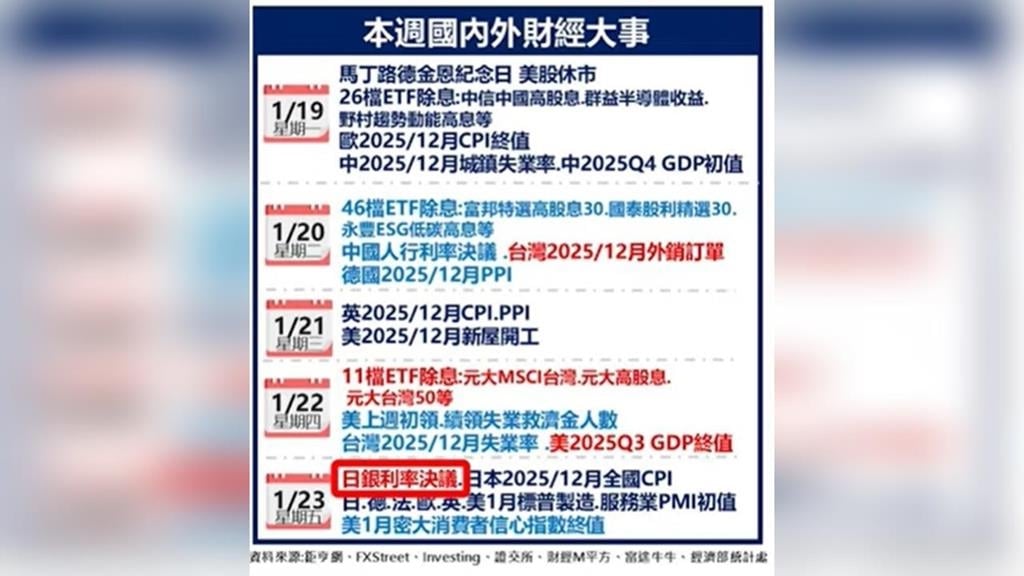 財經中心/綜合報導隨著年底來臨,0050等多檔ETF的除息活動吸引了廣泛關注。這將直接影響投資人獲利。12月外銷訂單受益於AI技術的持續發展,預計將創新高,為臺灣經濟增添動力。同時,美國第三季度GDP終值的公佈顯示經濟穩步增長,但可能低於預期,這將影響美聯儲的利率政策。而日本央行的利率決議則可能改變資金流向,進一步牽動全球股市。投資者需靈活應對市場變化,謹慎進行資產配置。