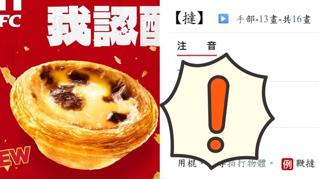 不過,這場「蛋撻之亂」還意外歪樓到讀音考據。有網友翻出教育部《國語辭典簡編本》中的「蛋撻」標準讀音,才發現許多人長年都念錯了。大家習慣把「撻」唸作三聲「ㄊㄚˇ」,但正確其實是四聲「ㄊㄚˋ」(tà),字義含有「以棍棒拍打」之意,也可引申為「勇武」。至於寫法上,肯德基官方商品用字為「蛋撻」,但日常生活中仍常見不少店家寫作「蛋塔」。過去就有網友解釋,「蛋撻」是港澳較常見的標準寫法,源於粵語語境,也呼應其由葡萄牙傳入的「葡式蛋撻」背景;而台灣因較早接觸到英式 egg tart ,便更常以「塔」字對應。不過兩者在使用上多被視為同義詞,概念相通,就像「滷肉飯」與「魯肉飯」一樣,更多是習慣差異。