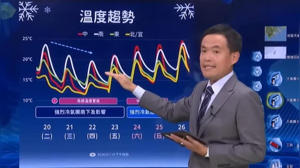 再來則是氣溫方面,鄭仁傑指出,明天白天的北部、東部,最高溫恐怕都不到20度、週三及週四甚至不超過15度;之後,就連中南部高溫也可能低於20度、東部低於18度。「隨著時間到了週三、週四,溫度會隨時間逐漸下降,特別是週四這天,全台灣溫度可能都不超過20度,提醒大家要留意」,他直言說。