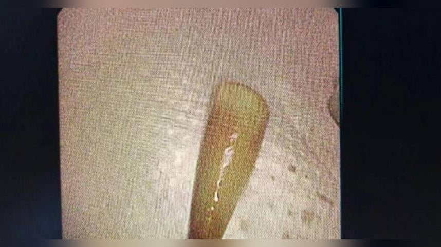 然而,止血藥物一停用,咳血症狀隨即復發,讓小林意識到問題嚴重性,終於同意接受支氣管鏡手術。手術當天,呼吸與危重症醫學科團隊在麻醉科配合下進行檢查,鏡頭深入左下肺反覆出血區域時,竟發現一枚白色塑膠筆帽卡在支氣管深處,周圍已被肉芽組織包覆,顯示異物滯留多年。