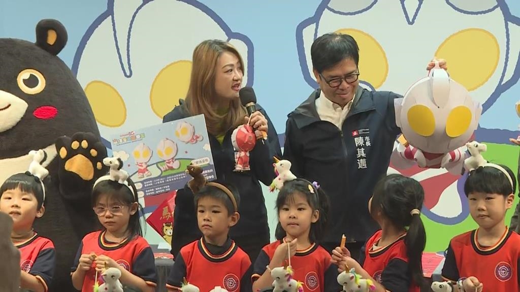 搭上超人力霸王IP,高雄市府週二公開今年的超人小提燈,就看到立委賴瑞隆還在致詞,高雄市長陳其邁,已經發揮他陳三歲的性格,開始在拆現場布置,迫不及待,想抱起特大號的超人提燈,終於拿到特大號提燈,就看到他露出滿足的笑容,在小朋友面前晃來晃去,彷彿在炫耀,2026高雄燈會冬日遊樂園,選擇超人力霸王的IP當主題,陳其邁也透漏背後的溫暖故事,陳其邁說,「光復鄉的堰塞湖事件,我們也見證了很多超人挺身而出,所以我們就有以超人,為主題的這個構想。」