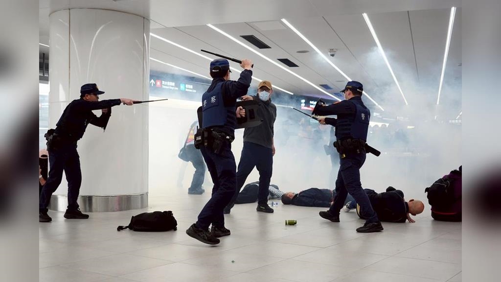投擲煙霧彈,持刀歹徒不斷叫囂,民眾倉皇逃離,模擬攻擊事件發生在台鐵月台,保全及員警馬上出動。員警vs.歹徒:「刀放下來有話好好說。」歹徒當場在月台遭到壓制,警消同步出動,救治傷者,但仍有漏網之魚逃往地下街,與員警展開對峙。歹徒vs.保全:「歹徒下來了,司法不公還我正義。」演練旁白:「拋射式電擊器射擊,透過拋射式電擊強力電擊,使歹徒全身肌肉痙攣。」