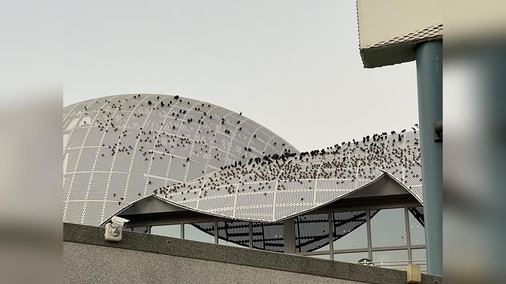 獨家/在屋頂唱歌! 「千鳥大軍」聚集清水服務區造型屋頂上