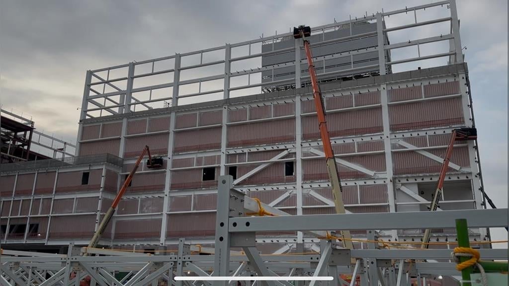 民視記者楊思敏:「台積電首度曝光,位在嘉義的先進封裝七廠,我們可以看到這個P1廠區,目前就已經在進行進機作業。」