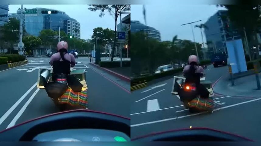 YouTube頻道「WoWtchout - 地圖型行車影像分享平台」上傳一段行車紀錄器影像,只見一名機車騎士行經新北市板橋區遠東路時,看見前方一輛機車上不僅有裝羊奶的箱子,後座還掛滿各種提袋,直接遮住車牌,轉彎時袋子幾乎要拖地,讓騎士忍不住直呼,「車牌全遮就有如吃了無敵星星,想怎麼騎就怎麼騎,嚴重超載,後座東西都快貼地~真的無法可管嗎?」