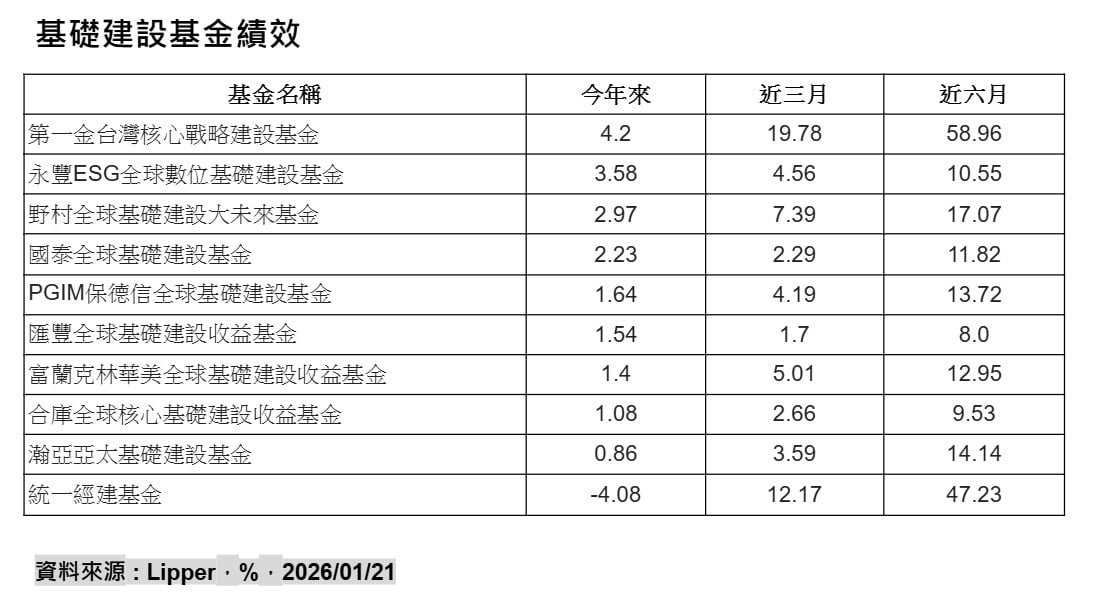 王翔慧表示,從基礎建設指數的個別產業來看,同樣可明顯看出電力相關產業持續受到市場資金青睞,分析MSCI私人基建資產指數個別產業近3年年化報酬率,以電廠14.3%拔得頭籌,其次為數位基建、輸電與配電同為12.1%,再來才是機場、交通、再生能源等,報酬率在7.9%至11.7%不等,顯見與AI和電力相關的基礎建設,已成為基建投資重心所在。