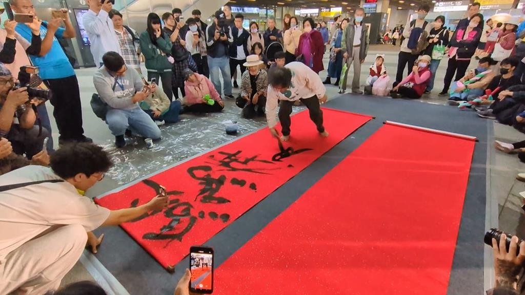 高雄車站新春添喜氣 書法家陳世憲揮毫3公尺超大春聯