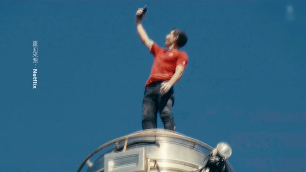 雙腳一跨,翻過護欄,傳奇攀岩家AlexHonnold,在101尖頂上,向下揮手,再拿起手機自拍,身後就是整個台北市,場面彷彿電影情節!歷時1個半小時的過程,成功征服台北101,圓了13年來的夢!我爬、再爬,攀爬過程中,Alex在光滑的玻璃牆面及鋼筋上挪動,雙腳幾乎快劈成了180度,不只核心耐力驚人,身體也是有夠軟Q!雙腳懸空,身穿招牌紅t恤的Alex坐在101大樓89層外的裝飾上,稍作休息,來到關鍵節點,他依然看起來很悠哉,但下方圍觀群眾,都不禁替他捏把冷汗!