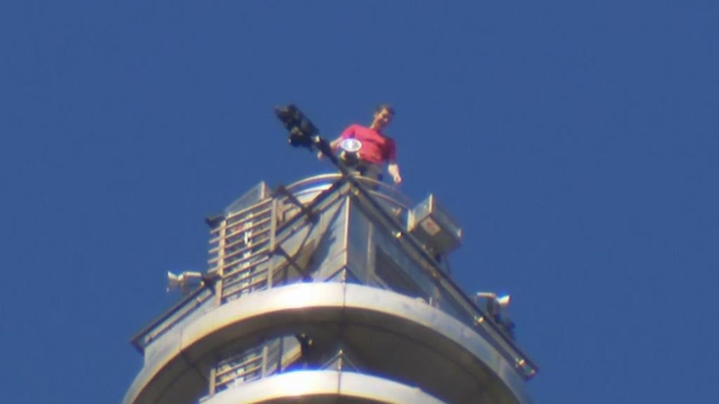 原定昨(24)天徒手攀登台北101的傳奇攀岩家霍諾德(Alex Honnold),因老天不作美,將攀爬日期改為今(25)天,目前台北天氣不錯,霍諾德也已經抵達現場。上午10點43分,他成功登上101最頂端,成功創造歷史!