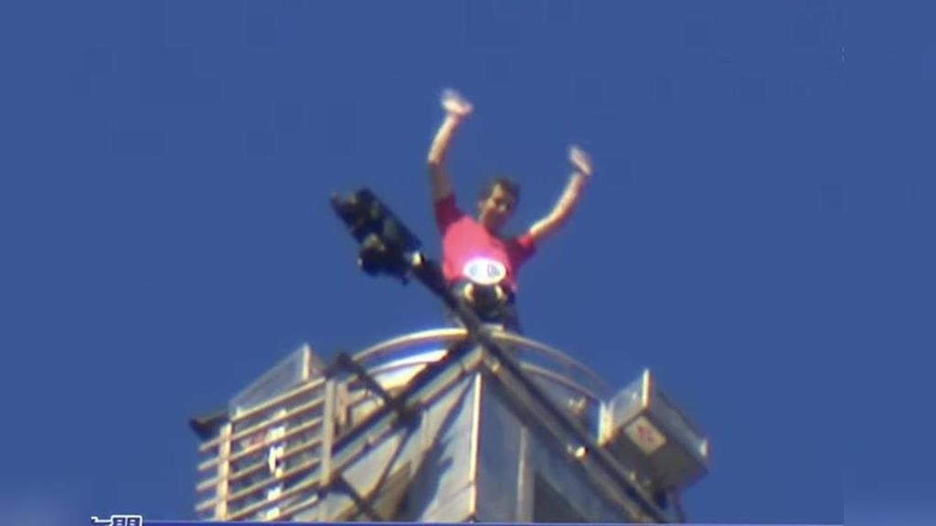霍諾德今(25)日輕裝上陣,身穿短袖上衣,揹著印有101圖樣的小袋子,內裝攀岩所需的石灰粉,僅憑徒手一路向上攀登台北101,最終成功登頂,完成歷史性壯舉。