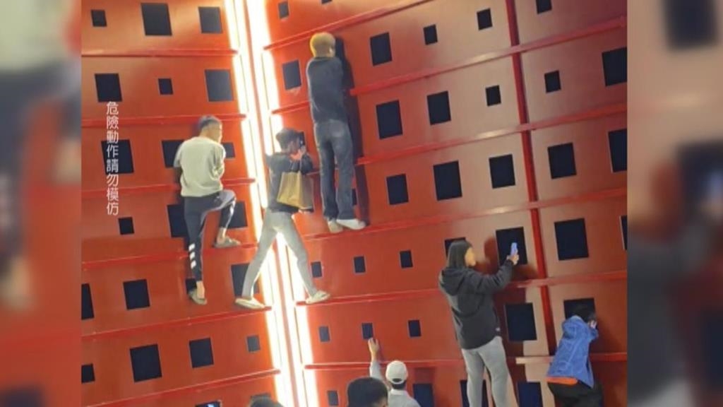 屏東燈節開幕活動,在縣民廣場除了有精采的煙火秀之外,舞台區還邀請了知名歌手陸續登場演出,只見開演前廣場就開始聚集人潮,大家都想近距離一睹藝人風采,但擠不到最前方的民眾竟異想天開,直接爬上後方的裝置藝術。民眾拍下這張照片,好幾位民眾透過裝置藝術簍空的部分往爬,彷彿就像蜘蛛人一樣,掛在鋼構的垂直面上,讓人膽戰心驚。民眾說,如果掉下來那一定會很慘,是不可取的,是不太好的,而且如果今天攀爬出事誰要負責。