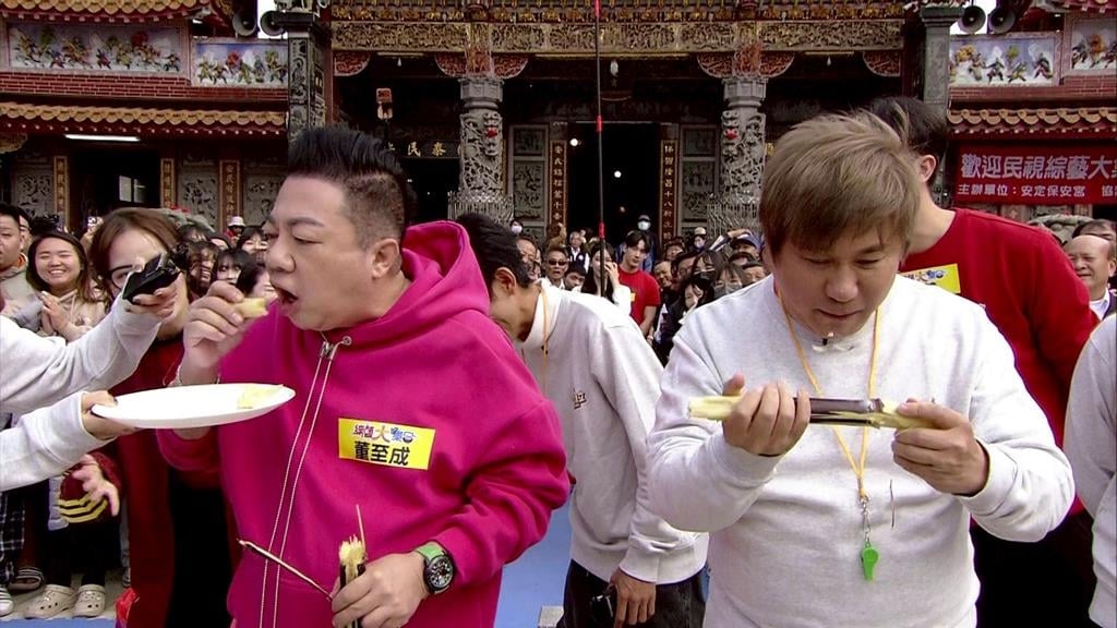 二位綜藝大哥場上啃咬甘蔗的畫面刺激又有趣,董至成見到自己啃下甘蔗皮的速度超前胡瓜許多,還故意放慢速度甚至咬起甘蔗果肉細細品味,以從容的節奏完成遊戲,讓胡瓜完全失去面子只好認輸。接著要準備進行第二關卡時,董至成再度搶走主持工作,更悄悄站在胡瓜旁邊霸佔籃籃的位子,眼見這幕讓胡瓜實在看不下去,直接將人推開。終於化解完這場鬧劇後,胡瓜才順利把遊戲道具交給阿翔說明,不過阿翔卻苦笑說,董至成已經把台詞講完讓他無話可說,令人哭笑不得。