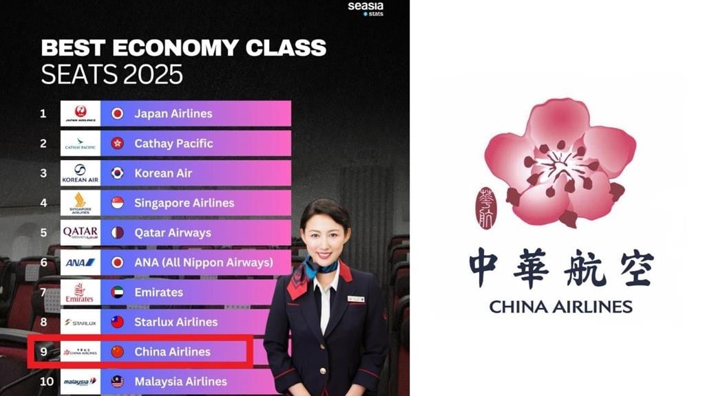 知名航空評級網站SKYTRAX,去年6月份公布「2025年全球最佳經濟艙航空公司」等多項評比;其中在「最佳經濟艙座位」項目,我國星宇、中華航空擠進全球前十名;但尷尬的是,新聞網站Seasia Stats昨(1)天引述本排名時,卻將華航的國籍掛上五星旗,再度引發網友熱議。