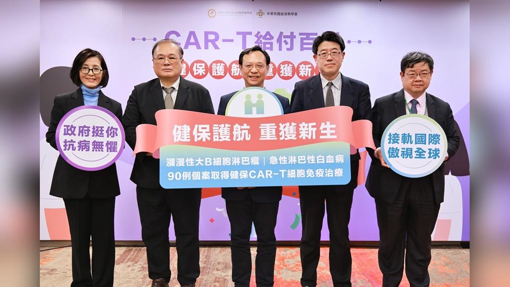 自 112 年 11 月起,中央健康保險署正式將 CAR-T 細胞免疫治療納入健保給付範圍,截至今年 1 月底,已有 90 例個案獲得健保給付資格,每位患者平均819萬元、總計近7.3億元的藥費,全數由健保支持。中華民國血液及骨髓移植學會葉士芃理事長表示,隨著我國的治療人數持續累積,學會的追蹤研究更是發現,本土治療成效整體表現優於全球臨床試驗結果,再次向國際證明我國醫療體系的臨床實力。