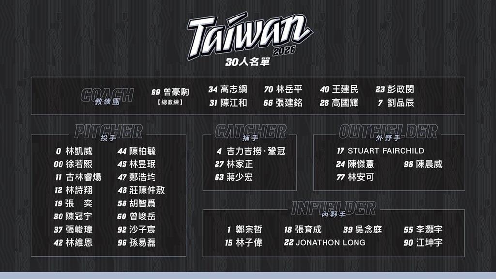 【原文出處】:經典賽/台灣隊30人名單出爐!完整陣容點這裡