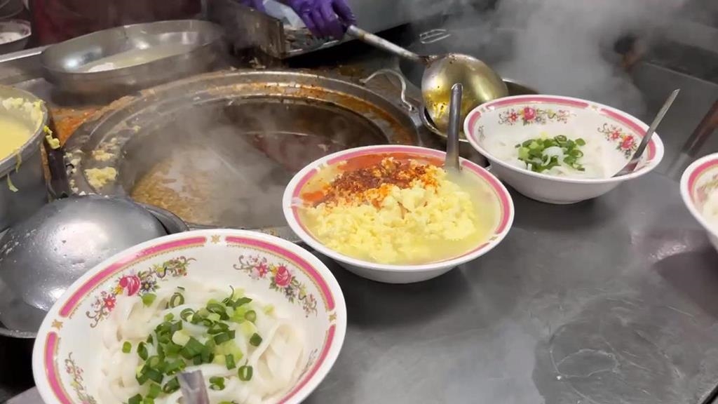 米干在鍋裡翻滾冒出白煙,整鍋熱氣直往上衝,湯頭帶著淡淡米香,配上半熟蛋、蛋花和肉片,瞬間多了層次,光看了就口水直流,天氣一冷,就得燒燒來一碗,桃園忠貞市場,一早就湧現排隊人潮,不少民眾排隊排了好久,只為這一碗。