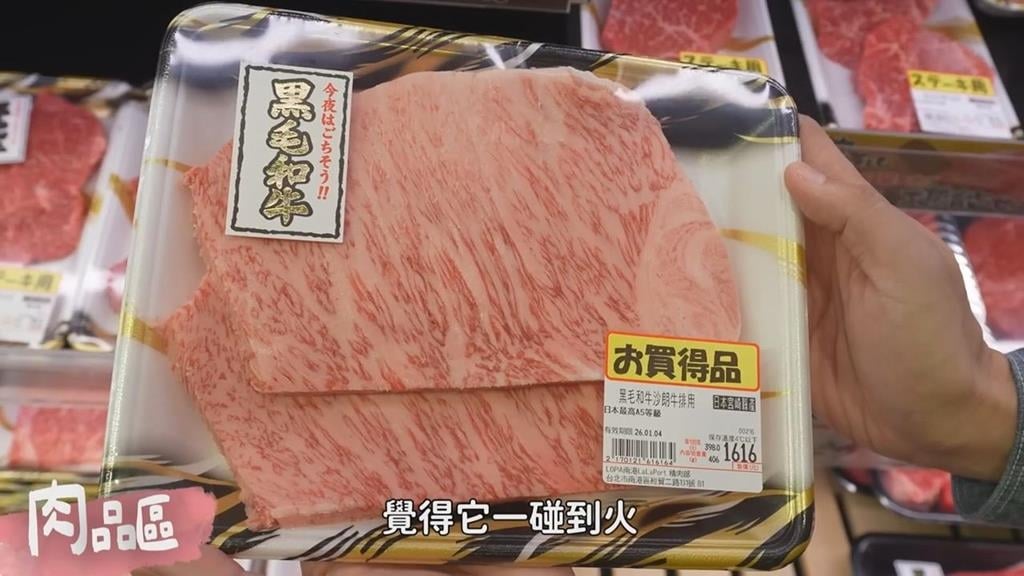 日本高檔連鎖超市LOPIA(樂比亞)近年進軍台灣後快速展店,主打現切肉品、日式熟食、現做壽司與甜點烘焙區,憑藉「大份量、高品質、高CP值」策略爆紅。經常開箱人氣美食的YouTuber拿拿摳,近期也親自朝聖,大讚根本是「吃貨天堂」,多款超浮誇巨無霸餐點讓他逛到失心瘋。走進熟食區,最吸睛的就是各種「放大版料理」,後切豬排有三指寬,壽司尺寸幾乎是一般市售兩倍起跳,鮭魚大片到看不到底下醋飯。拿拿摳一邊拍一邊驚呼CP值真的高到誇張。重頭戲的肉品區現場擺滿日本直送高級牛肉,其中,A5和牛細緻油花幾乎像大理石紋路般均勻分布,粉紅色澤閃閃發亮,讓他「看入迷」,忍不住笑說:「用我的手的溫度會不會就融掉?」