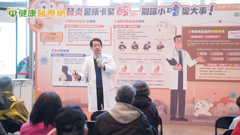 ▲策展期間舉辦衛教講座,向民眾說明嚴重氣喘與嗜酸性白血球的關聯,若有相關症狀應就醫檢查。