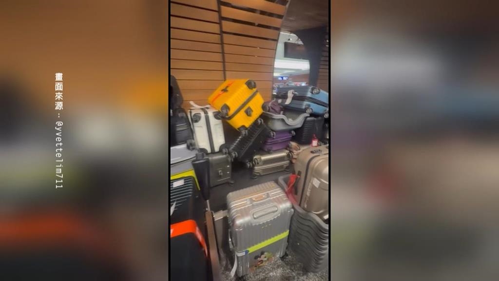 五顏六色、大小不一的行李箱,一個疊著一個,堆成一整排小山一樣,甚至有的已經放到旁邊地上,但輸送帶卻動也不動。旅客拍下這"大塞車"的景象,質疑是因工作量太大"罷工"了。