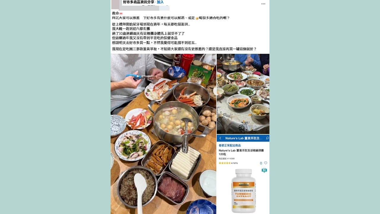 【原文出處】:連續應酬身體拉警報!網友好市多狂掃薑黃、B群求生存