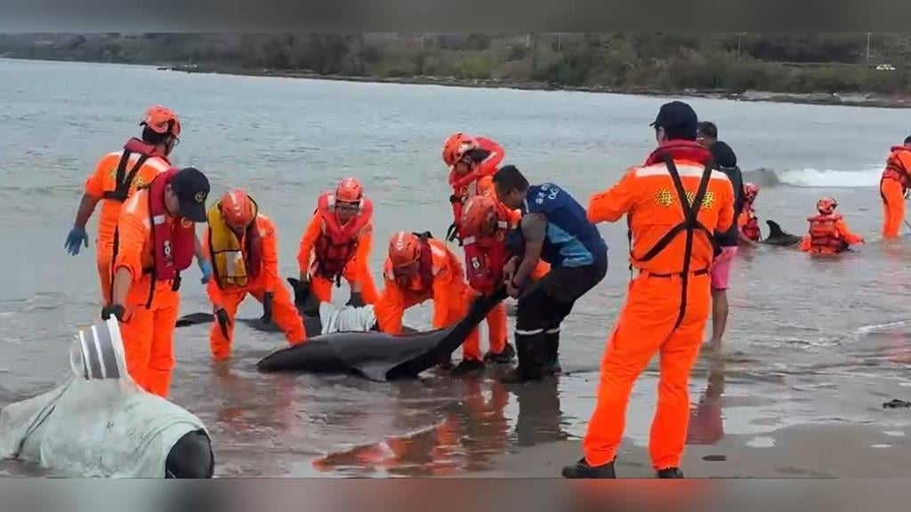 屏東海口沙灘驚傳11隻小虎鯨集體擱淺!4隻已死亡 7隻搶救中
