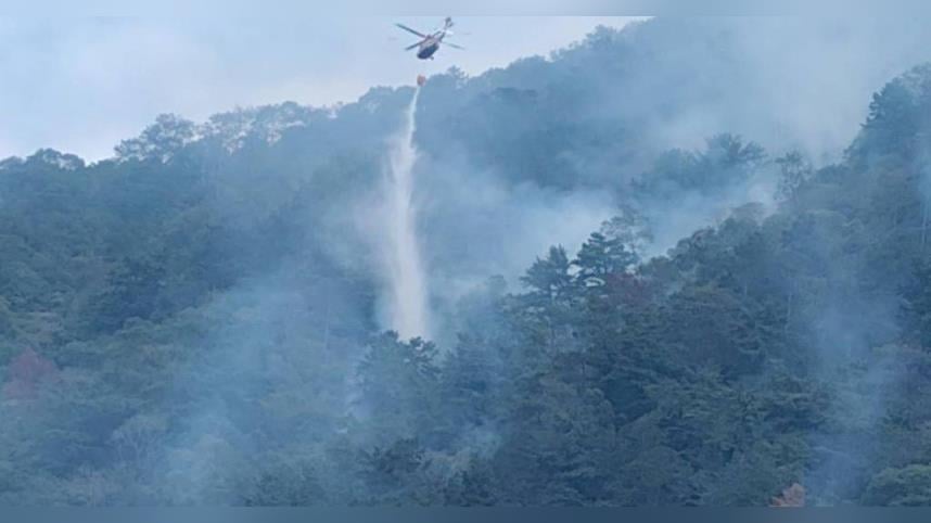 南投分署表示,火場延燒面積已達39.93公頃,防火線布設2149公尺,截至25日,陸軍直升機累計投水101架次共505公噸、空勤總隊直升機累計投水113架次共226公噸。