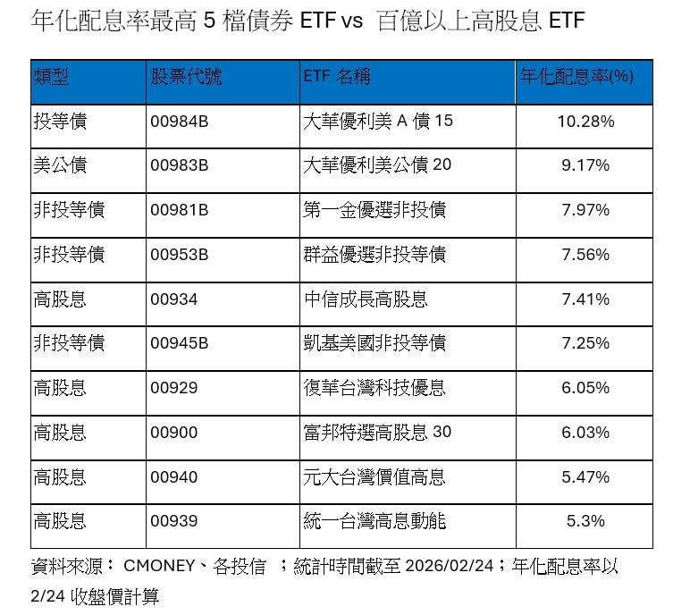月配息ETF年化配息率排行!一表掌握 債券強壓高股息
