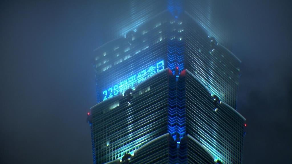 2/28晚上六點鐘,台北101大樓外牆點燈,秀出「228和平紀念日」字樣,「以愛撫慰傷痛」、「自由民主台灣」、「團結前行」和「希望與愛」,追思228事件79週年。