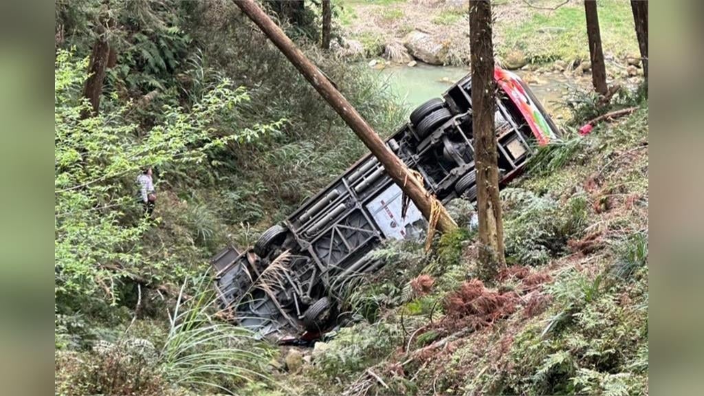 南投遊覽車墜落約40公尺山谷翻覆 至少6輕重傷、1命危