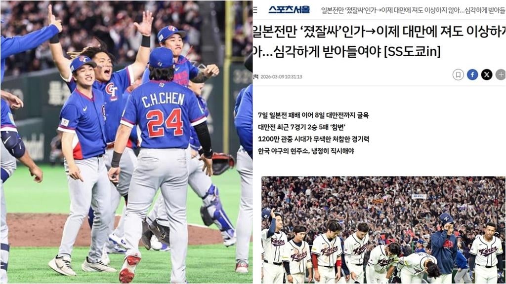 2026世界棒球經典賽C組預賽台灣隊昨(8)日在延長十局5比4險勝南韓,打出令人動容的一役,不僅不少球迷感動到落淚,就連台灣球員們也都在現場爆哭。眼看台灣隊表現亮眼,不少南韓人也對自家球員表現感到失望,南韓媒體也承認了台灣隊實力,坦言過去曾將台灣棒球「視為『次等』層級」,並寫下「或許從今以後,輸給台灣將不再被稱為『慘案』」、「必須嚴肅看待這一切」。