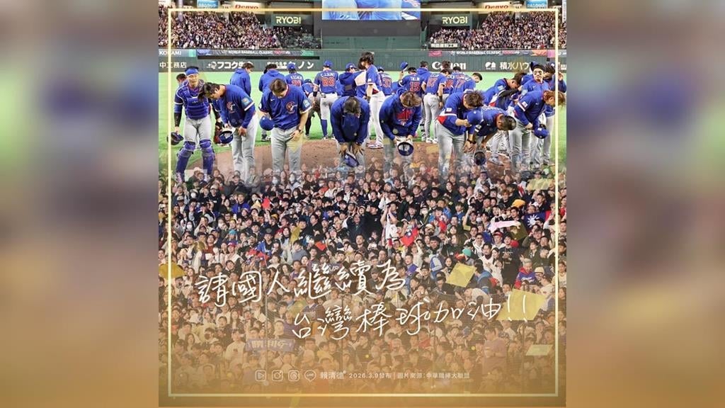2026世界棒球經典賽(WBC)今(9)晚上演「韓澳大戰」,而本場成績攸關台灣隊是否能前往美國邁阿密、晉級八強,因此深受到國人高度關注;但是,最終韓國隊以7:2贏澳洲隊的情況下,依照失分率計算,台灣隊確定無緣繼續挑戰。對此,總統賴清德在臉書引用動畫《葬送的芙莉蓮》的一句話喊話「努力過的人都是戰士」。