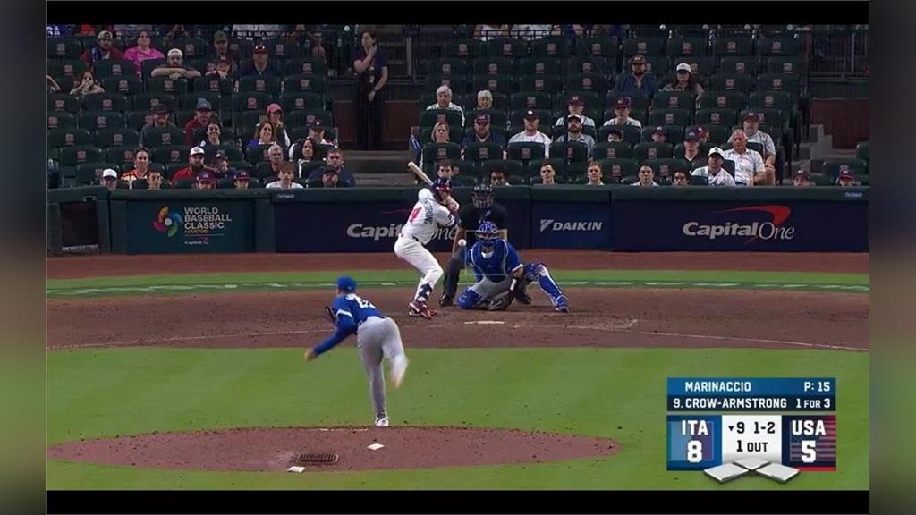 8局下美國隊持續追分,Roman Anthony擊出左外野安打送回Kyle Schwarber,比分縮小至8比5。9局下Crow-Armstrong再度開轟完成單場雙響砲,將差距追至8比6。