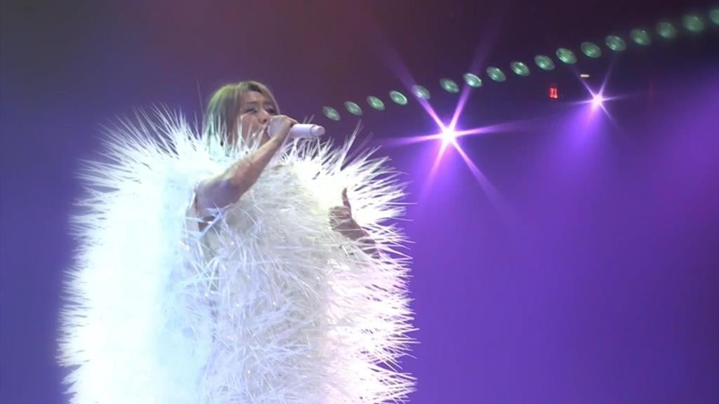 一身白色刺蝟裝扮,為香港巡迴演唱會揭開序幕。