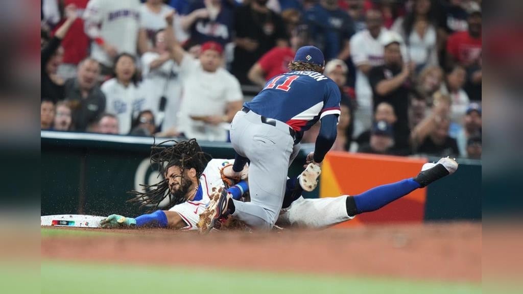 多明尼加對美國的比賽進行到三局下半,小大帝士(Fernando Tatis Jr.)先靠著野手選擇上壘,隨後馬提(Ketel Marte)在兩出局後敲出右外野安打,小大帝士從一壘通過二壘繼續衝向三壘,右外野的法官賈吉(Aaron Judge)迅速撿起球後,一記筆直的雷射傳球直送三壘,讓三壘手接球後立即觸殺小大帝士,演出五星級精彩美技,現場主播驚呼:「Judge的肩膀太誇張了!」這次防守不僅結束該局攻勢,也讓多明尼加有可能擴大的得分機會瞬間熄火。賈吉4局下半又展現一次精采守備,一個飛撲把索托打的強勁飛球接殺,又是一個美技演出。