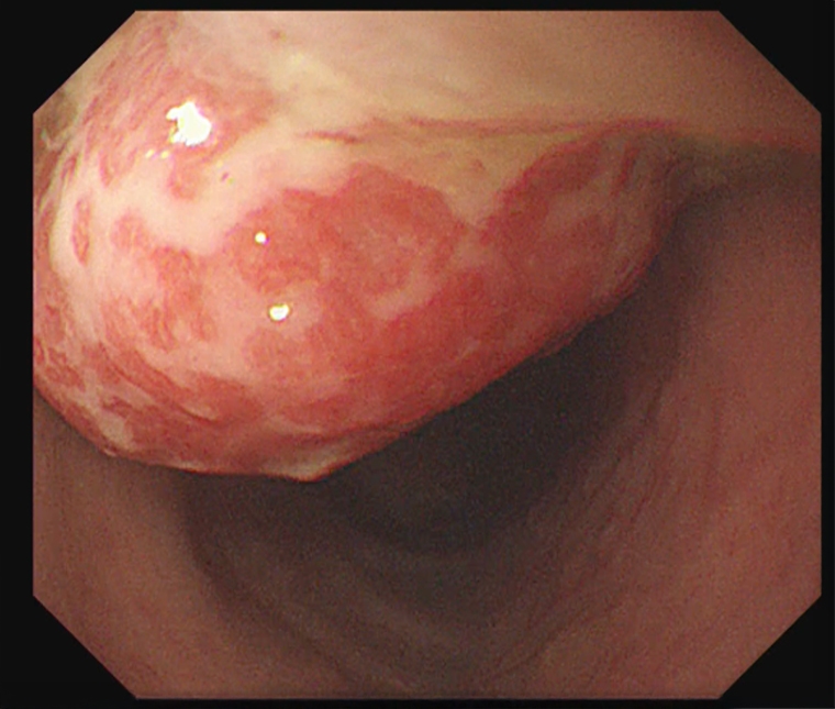 ▲個案接受大腸鏡檢查時,發現約2公分的單顆息肉,並在同次檢查中完成切除。(圖/台北慈濟醫院提供)