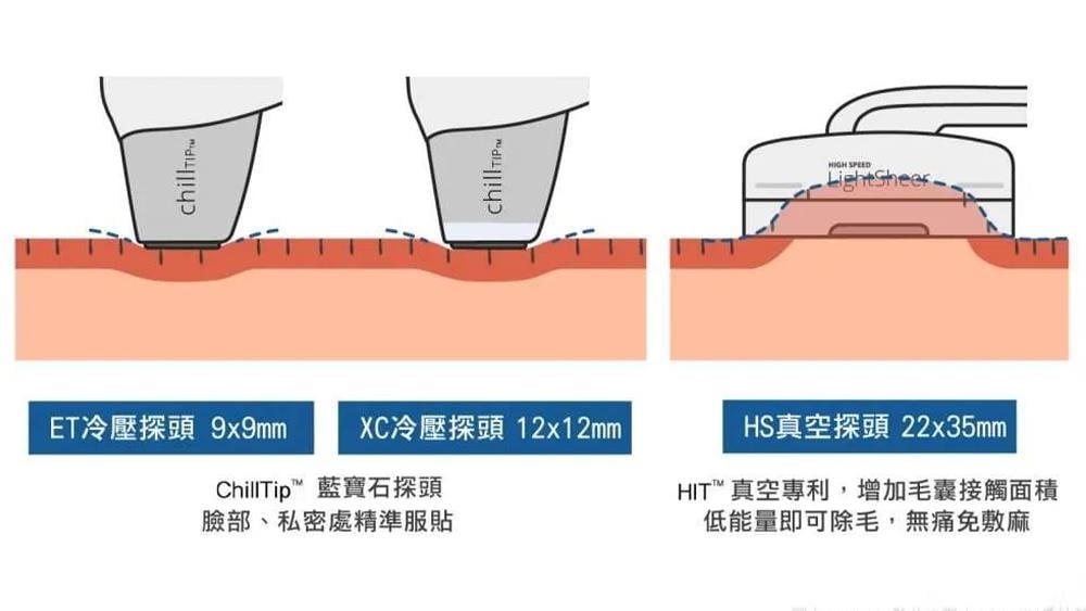 在除毛設備中,LightSheer 真空式二極體雷射系統是一種常見的除毛設備。該設備由國際醫療器材公司 Lumenis 研發,其特色是採用真空吸附探頭設計;在治療過程中,探頭會產生輕微吸附作用,使皮膚與毛囊接近雷射能量的作用位置,讓毛囊更容易接觸到雷射光能。同時設備搭配冷卻系統設計,可在療程過程中協助降低表皮熱感。