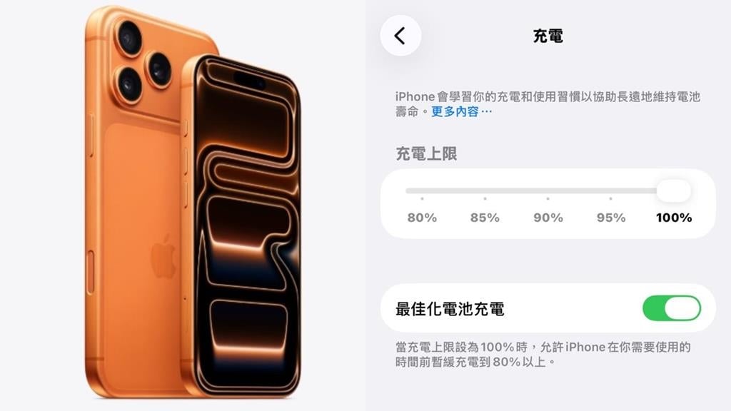 針對網友分享的保護電池方法,蘋果官方則建議,想延長電池壽命,可以啟用「最佳化電池充電」功能,根據習慣讓電池在需要前才充至 100%,並可設定 80%-95% 的「充電上限」來降低高電量下的電池負擔,同時應避免讓裝置處於 35°C 以上高溫環境。