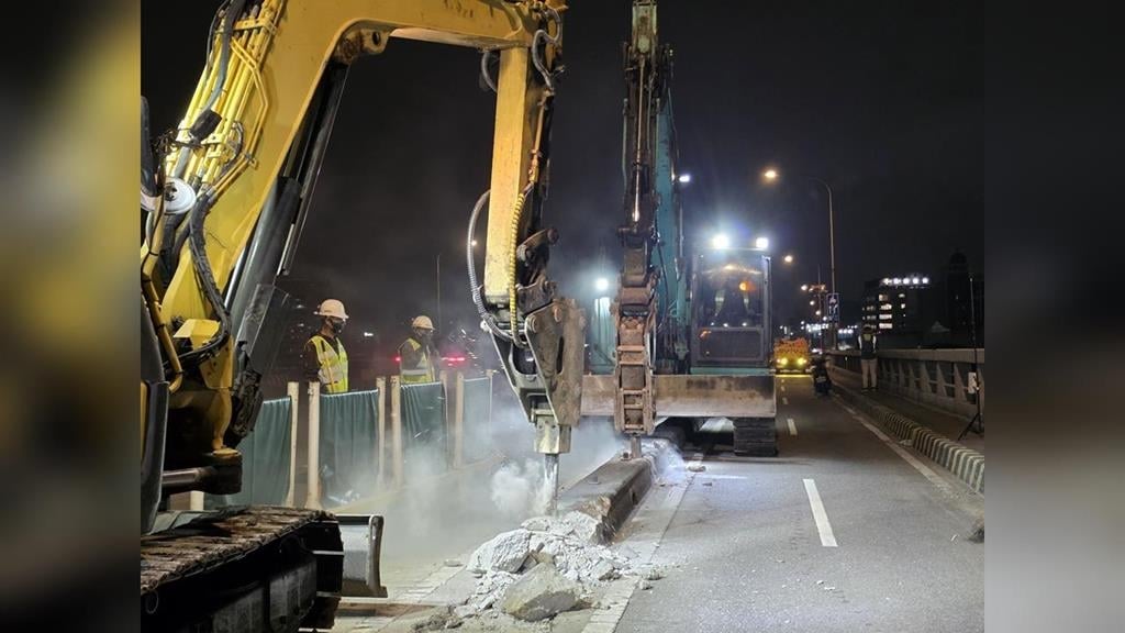 養工處長鄭立輝則表示,大漢橋機車分隔島拆除工程自3月10日開工,目前進行板橋往新莊方向的分隔島拆除與破碎作業。後續將辦理路面AC(瀝青混凝土)刨鋪、槽化線與標線劃設,並同步調整車道標線。待工程全面完成後,機車騎士通行橋梁時,行車視野將更為開闊順暢。