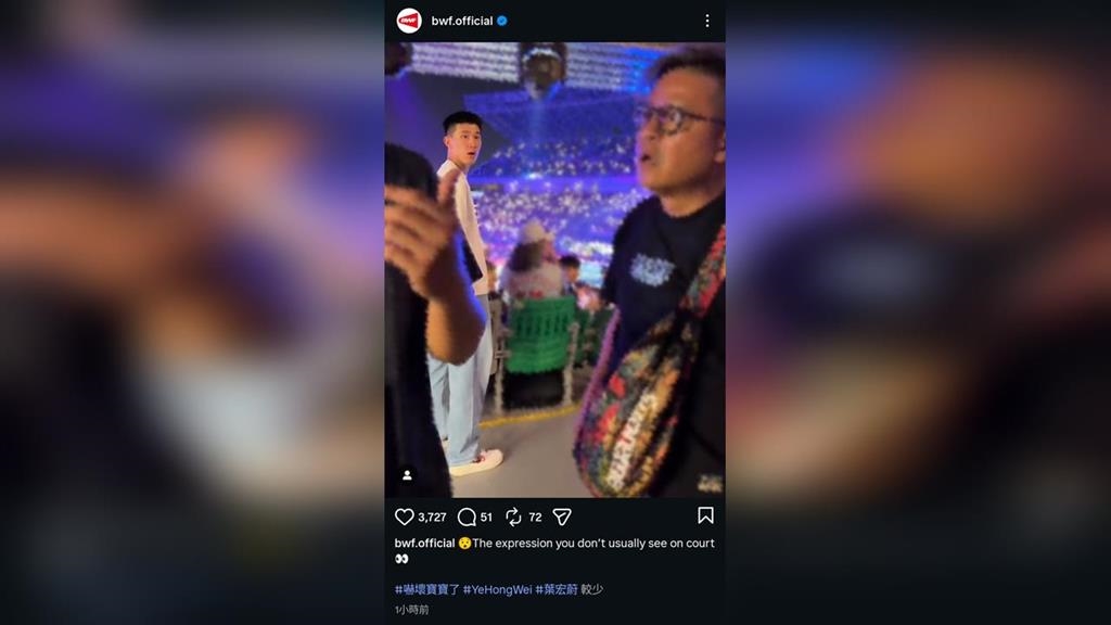 巧的是,事發當下甫在全英公開賽混雙奪冠的男子羽球好手葉宏蔚就在現場,看到衝突後露出超驚恐表情,意外登上BWF(羽球世界聯盟)官方IG,貼文寫下:「😯在球場上不常見到的表情 👀#嚇壞寶寶了#YeHongWei #葉宏蔚」不少網友湧入留言:「官網帶頭玩梗最為致命」、「笑死上官網了」、「宏蔚紅到國外去、蔣男丟臉到國外去」