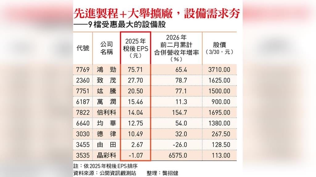 設備股王鴻勁 EPS衝破百
