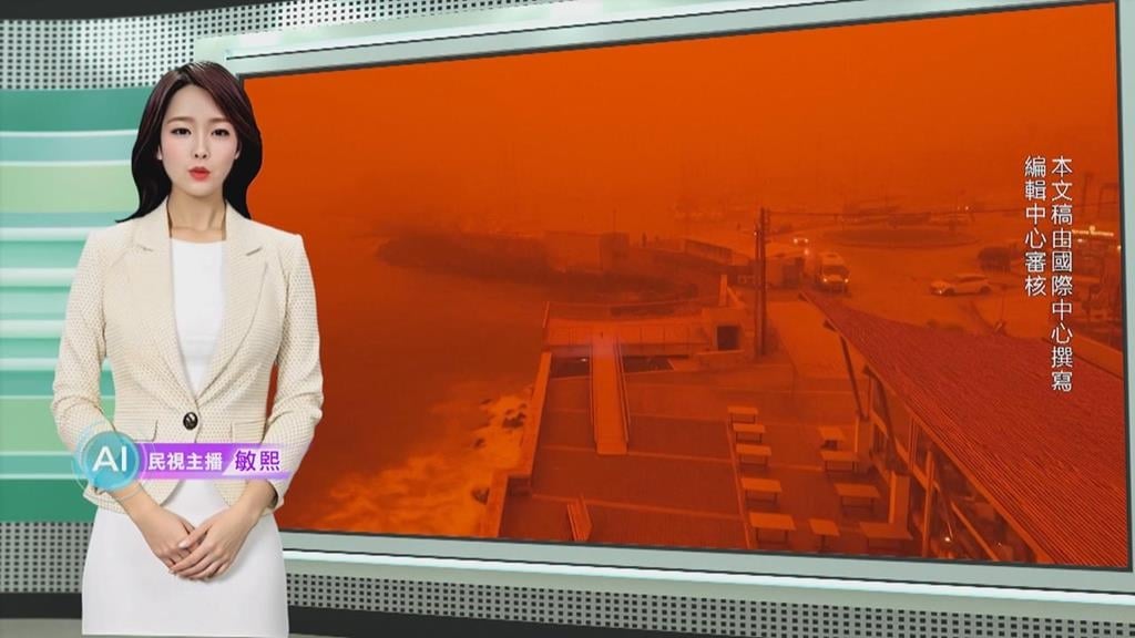 哈囉,大家好,我是民視AI主播敏熙,來看今天的國際氣象消息。北非撒哈拉沙漠的沙塵暴波及到希臘,當地克里特大區的伊拉克利翁,1號被沙塵籠罩,放眼望去天空一片橘色。由於沙塵導致能見度降低,因此有航班被迫改降到其他機場。目前有一波鋒面正通過希臘,降雨有望可緩解沙塵暴的影響。