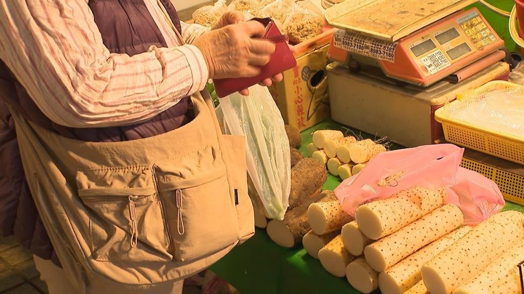 市場攤商:「有些客人不(多)給他,他會生氣耶,他就會回你那一句話,你不給我以後不跟你買,放5斤到10斤(袋子)到外面,現在我都收起來,我以前不會收起來,我現在就要收起來,(因為太貴了),對太貴了。」