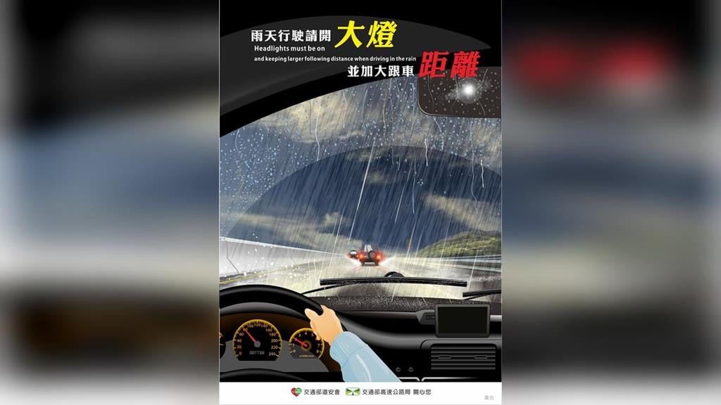 中央氣象署上午發布大雨特報,苗栗以北及臺中、南投、花蓮山區有局部大雨機率。高公局提醒,雨天行車請開啟頭燈、加大跟車距離,如視線不佳務必降速或暫時停駛,確保自身及他人安全。高公局祝大家清明假期返程平安。