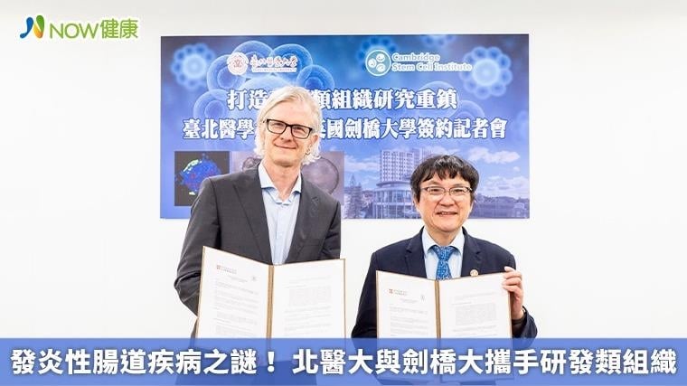 【NOW健康 楊芷晴/台北報導】原本好發於歐美國家的克隆氏症、潰瘍性結腸炎等腸道慢性發炎性疾病(IBD),最近幾年在亞洲地區發生率明顯提高,台灣也是如此,如何找出致病機轉,進而打造個人化用藥模式,成為醫界亟欲破解的謎題。為此,北醫大與英國劍橋大學小兒部與幹細胞中心Matthias Zilbauer教授簽署合作意向書(MOU),希望透過腸上皮與腸道發炎疾病類組織平台,為治療開闢另一個新途徑。